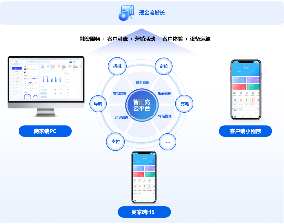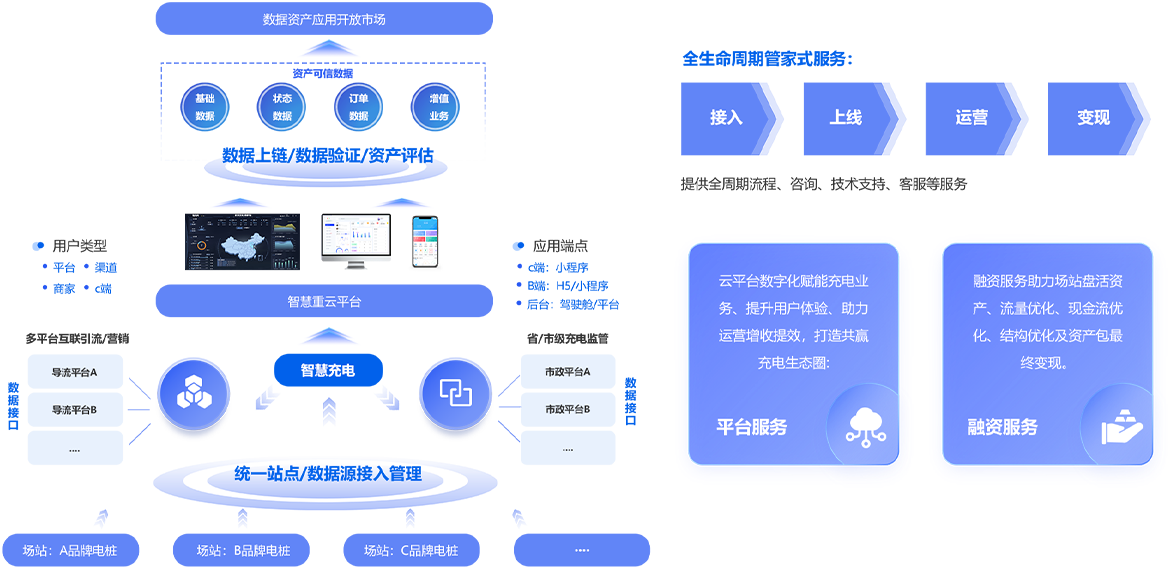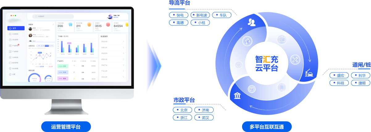 多渠道客户引流、增长、提升营收,市政监控对接、充电政策补贴申报,充电场站三方系统对接、管理